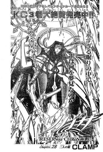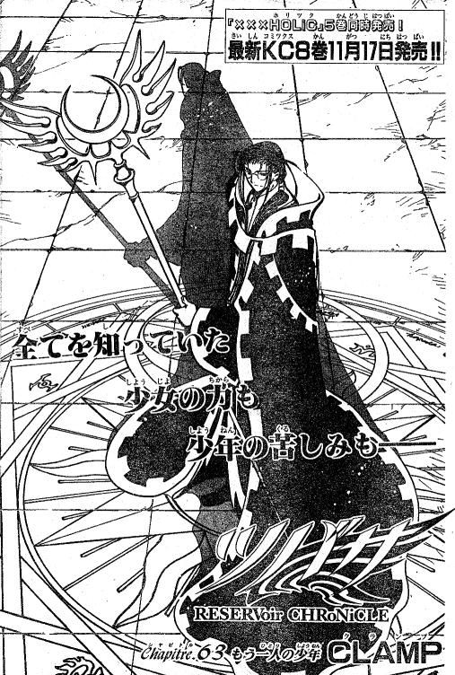 I'd love to say it's just another of CLAMP's "oooh, let's do something shiny" moments, but I'm not so sure. A while ago I noticed that the Ashura-oh splash page and one of the Clow splash pages parallel each other. I wonder if they're going somewhere with the RG Veda references. (Favourite character + most hated character + parallel = brain goes boom)